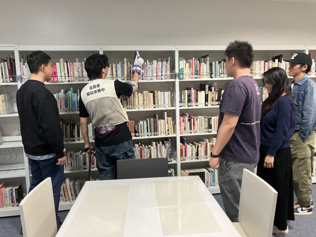 最後のプログラムは、「高齢者疑似体験」でした。学生全員が疑似体験をすることができ、高齢者の身体的な制約を実感しました。