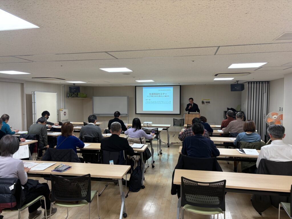 21日は中央区人形町にある日本橋社会教育会館にて行いました。当日はかなり冷え込んで寒い一日となったためか、参加予定の方で当日辞退される方も出るほど。ですがセミナーが始まるとシニアのライフプランとマネープランのお話、都内の就労支援機関のご案内を非常に熱心に聞かれている方が多かったです!
