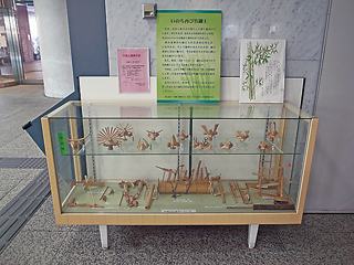 太白区中央市民センターのロビーに展示されている竹細工作品