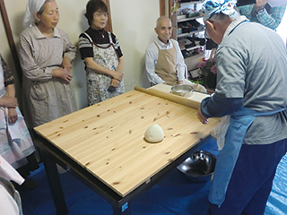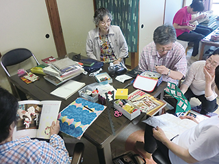 - コロナ禍の中、三密を守りながら、歌うこと、食べること等は自粛し、健康づくり、介護予防として週3回の「でん伝体操」、刺し子作りの手芸教室などを開いている。