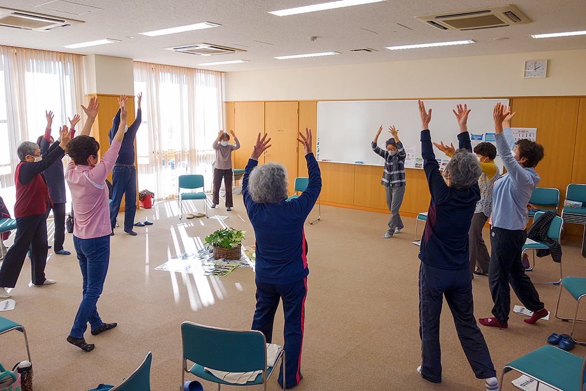 - 健康維持・増進のためのこころと体のセルフケアとして、百歳体操・キャパシタこころと体のセルフケア体操を行っている。