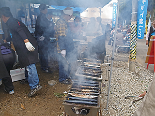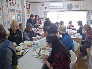 - 震災の2カ月後に宮城県東松島市の避難所でパラソルとテーブルを置いたオープンカフェを開いて以来、同市を訪れるバスツアーを20回以上開いたり、東松島市内の子どもたちを招いて、松戸市内の子どもたちとサマーキャンプを開いたりして、交流してきた。東松島市民とのつながりで、14年11月には、宮城県女川港で水揚げされたサンマ300匹を仕入れて、ご飯、豚汁付きの食事を提供する「大さんま祭」を開いた。